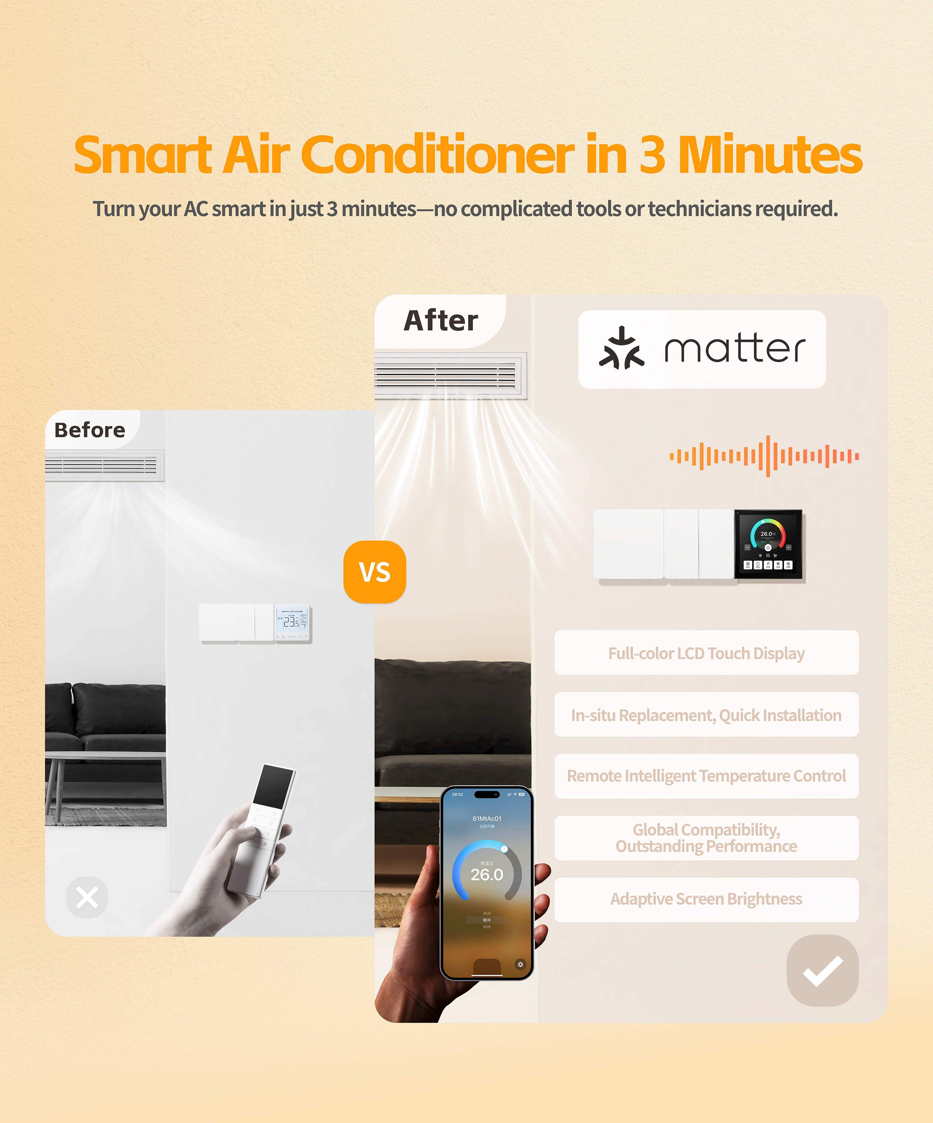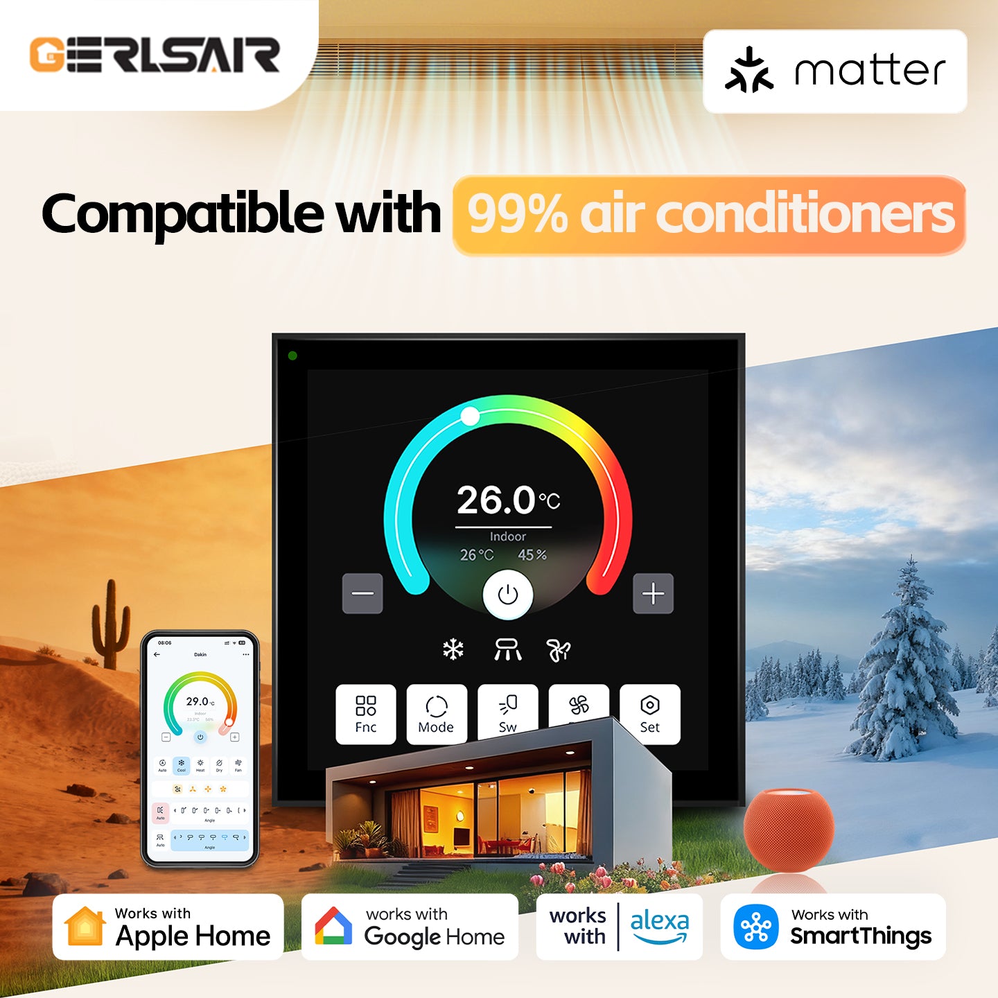 Voice control: Control your AC with Apple HomeKit, SmartThings, Amazon Alexa,Google Home.